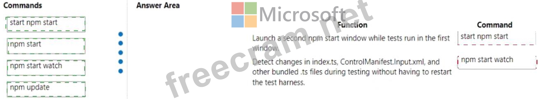 Which commands should you use? To answer, drag the appropriate commands to the correct functions. Each command may be used once, more than once, or not at all. You may need to drag the split bar between panes or scroll to view content.