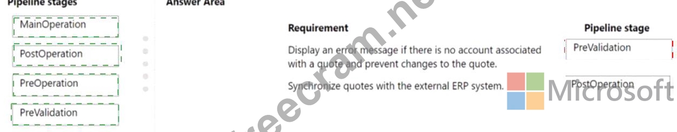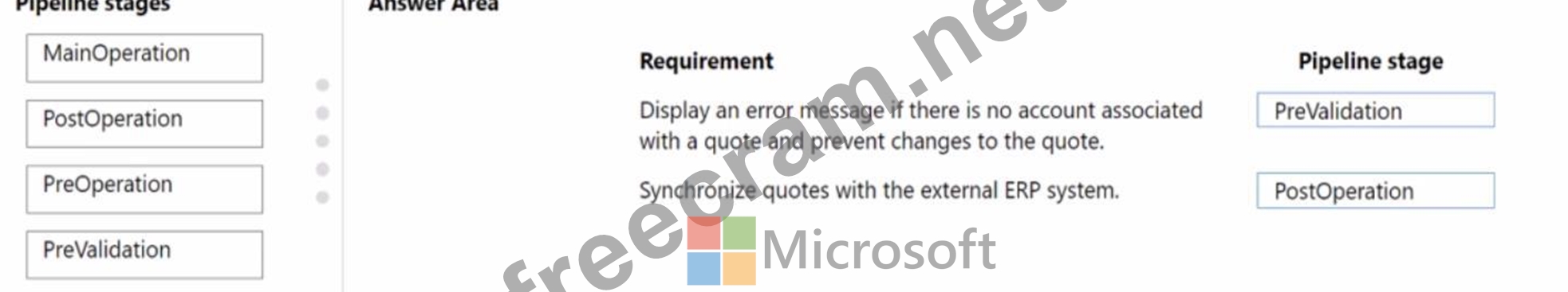 You are developing a Power Apps app for a company. The app will interact with the company's enterprise resource planning (ERP) system. The app allows users to create quotes for customers. You are creating a plug-in for the app.