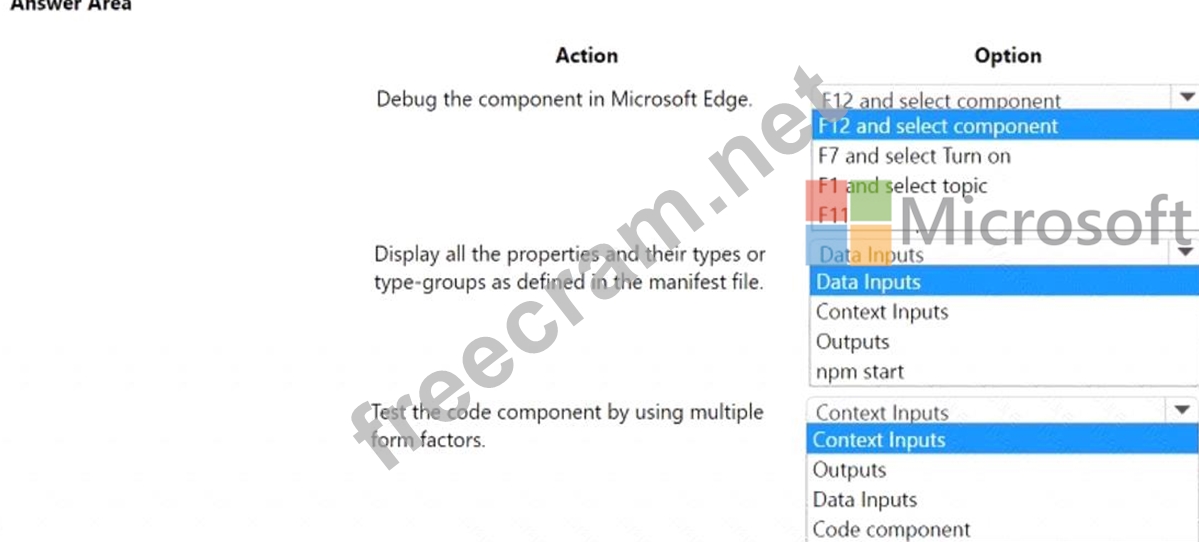 Question 129: You need to develop a Power Apps Component Framework (PCF) c...