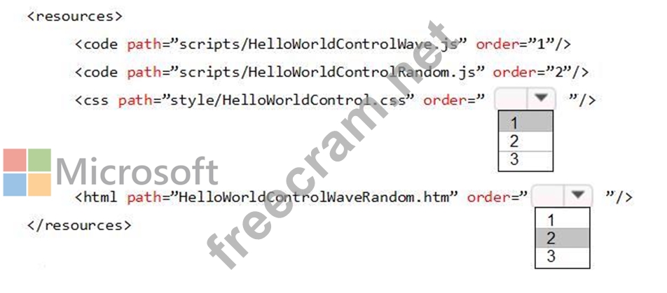 How should you define the order in the manifest? To answer, select the appropriate options in the answer area.