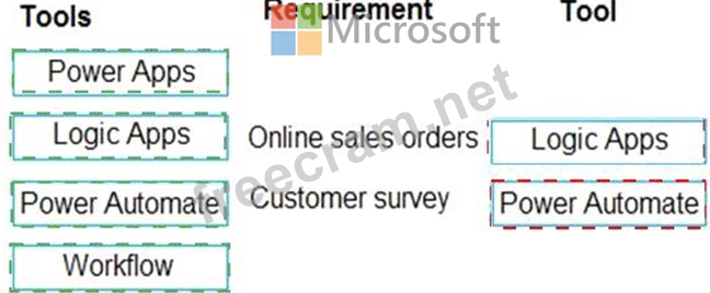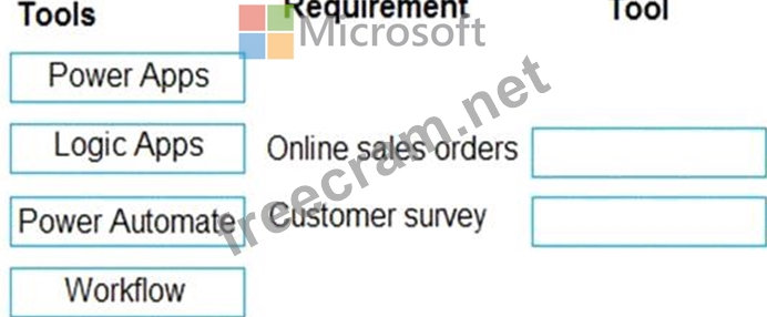 Which platform tools should you recommend? To answer, drag the appropriate tools to the correct requirements. Each tool may be used once, more than once, or not at all. You may need to drag the split bar between panes or scroll to view content.