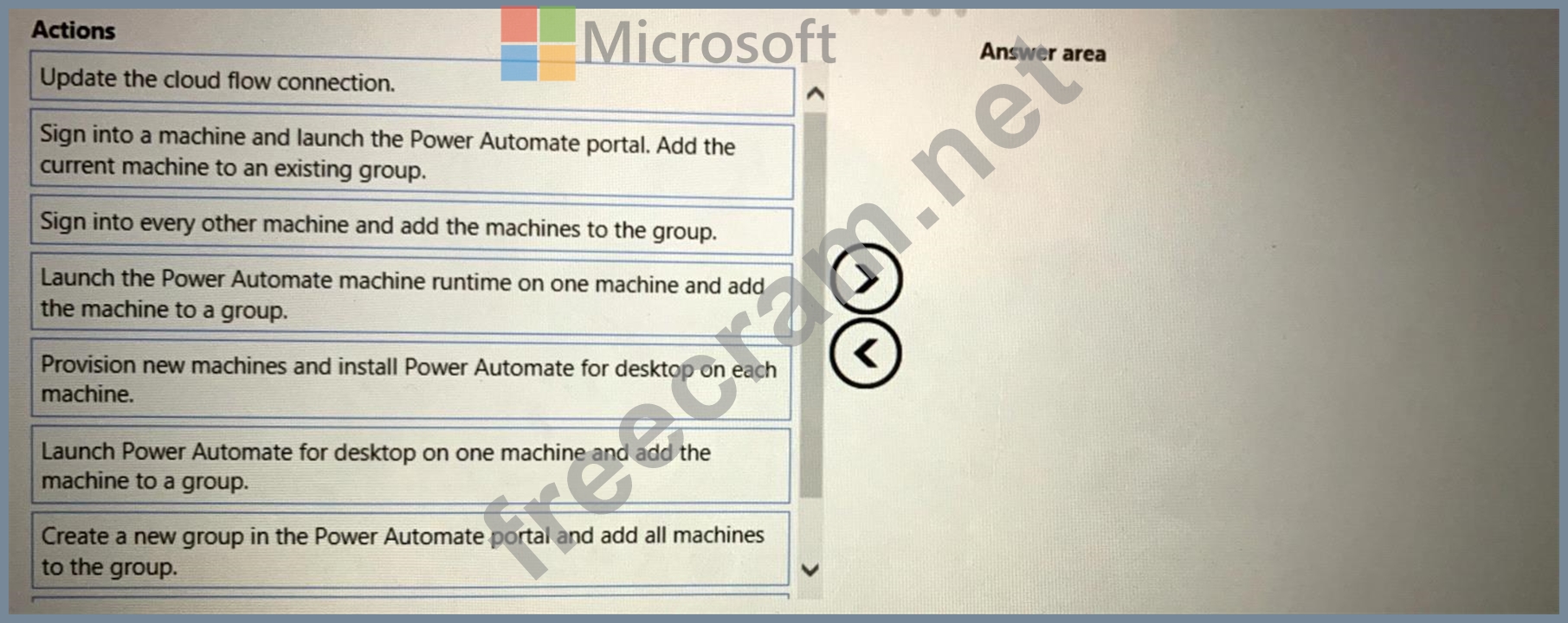 Which four actions should you perform in sequence? To answer, move the appropriate actions from the list of actions to the answer area and arrange them in the correct order.