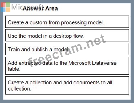 Which five actions should you perform in sequence? To answer, move the appropriate actions from the list of actions to the answer