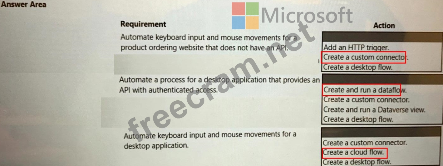 You need to select the appropriate action for each automation scenario.