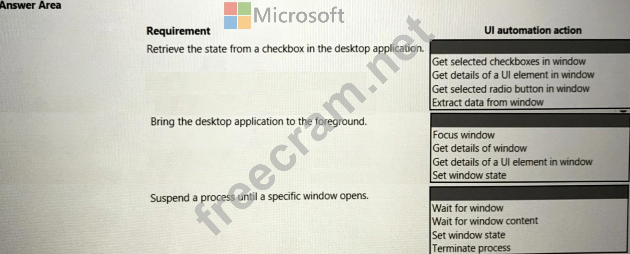 You need to select the appropriate Ul automation action for each business requirement.