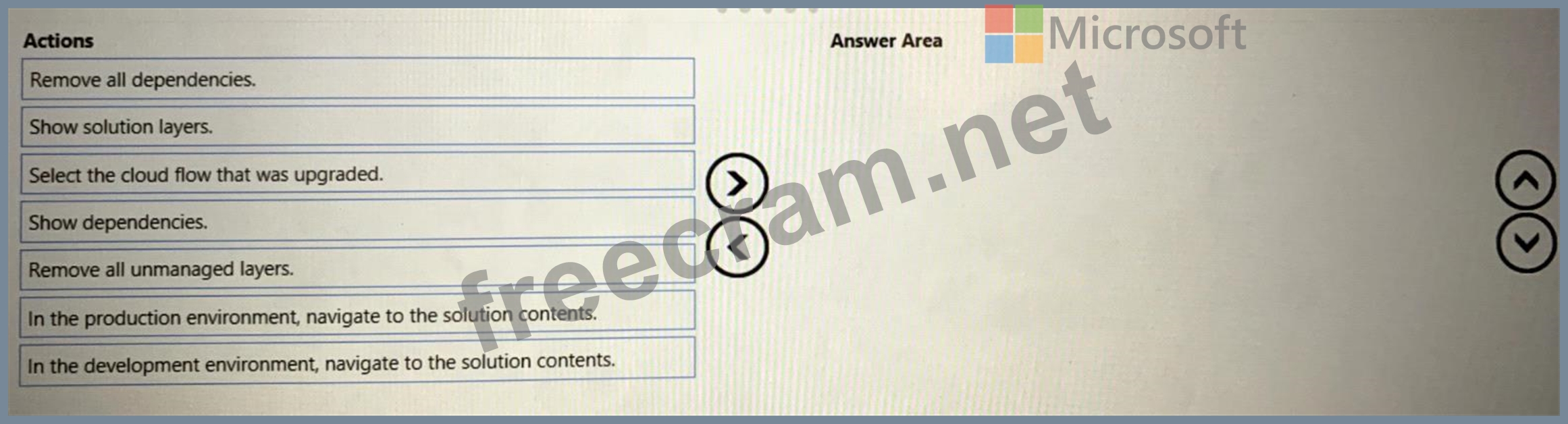 You deploy a cloud flow to a production environment. You make changes to the cloud flow in a development environment You import the updated solution to the production environment. You observe that the cloud flow is not updated. You need to resolve the issue. Which four actions should you perform in sequence? To answer, move the appropriate actions from the list of actions to the answer area and arrange them in the correct order.