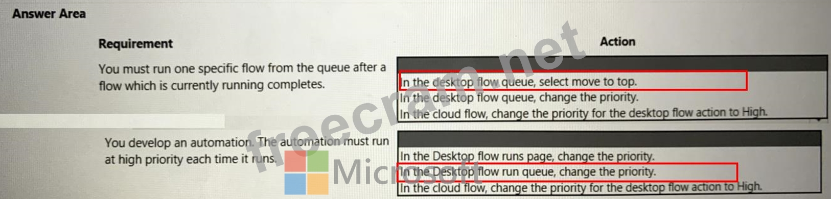 You need to manage the flows. To answer, select the appropriate options in the answer area.