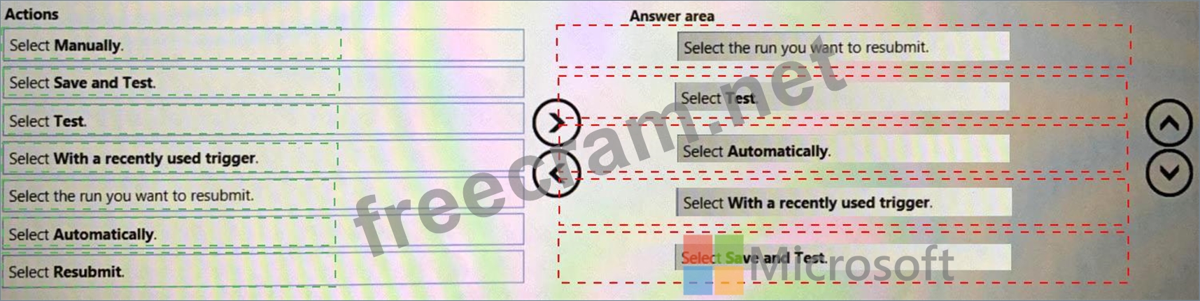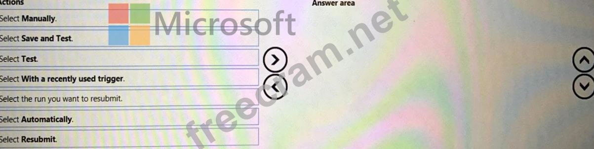 Which five actions should you perform in sequence? To answer, move the appropriate actions from the list of actions to the answer area and arrange them in the correct order.