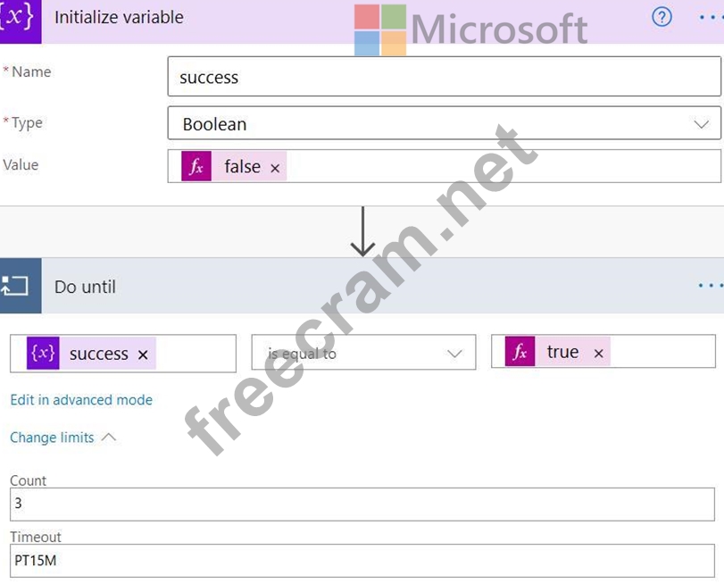 Question 12: You create the following flow. (Exhibit) Use the drop-down m...