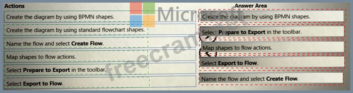 Which five actions should you perform in sequence? To answer, move the appropriate actions from the list of actions to the answer area and arrange them in the correct order.