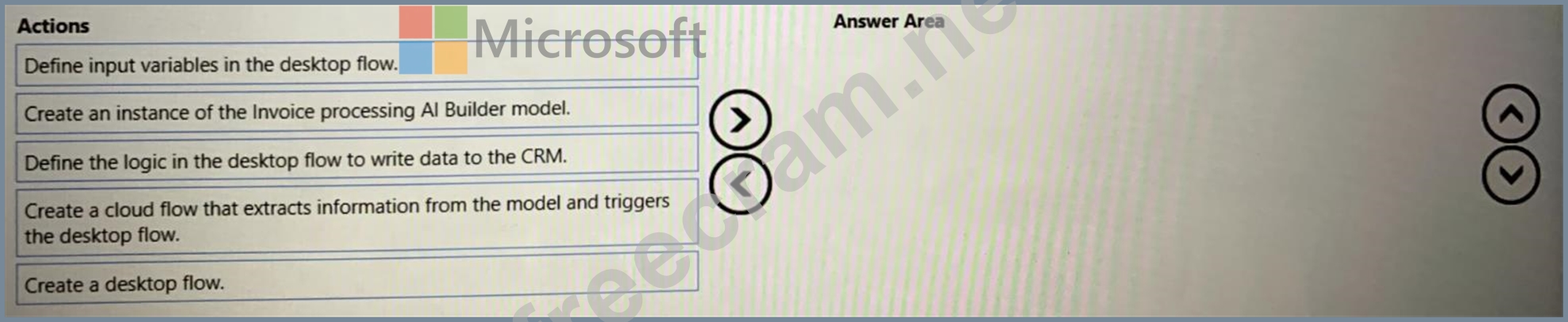 In which order should you perform the actions? To answer, move all actions from the list of actions to the answer area and arrange them in the correct order.