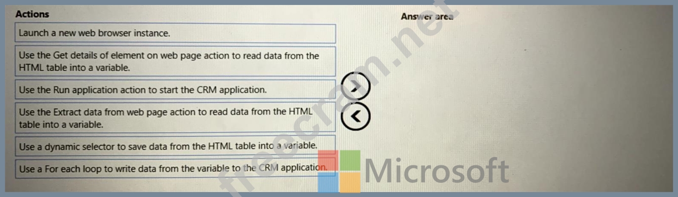 You need to implement an RPA solution that reads data from the HTML table and create records in the CRM application.
