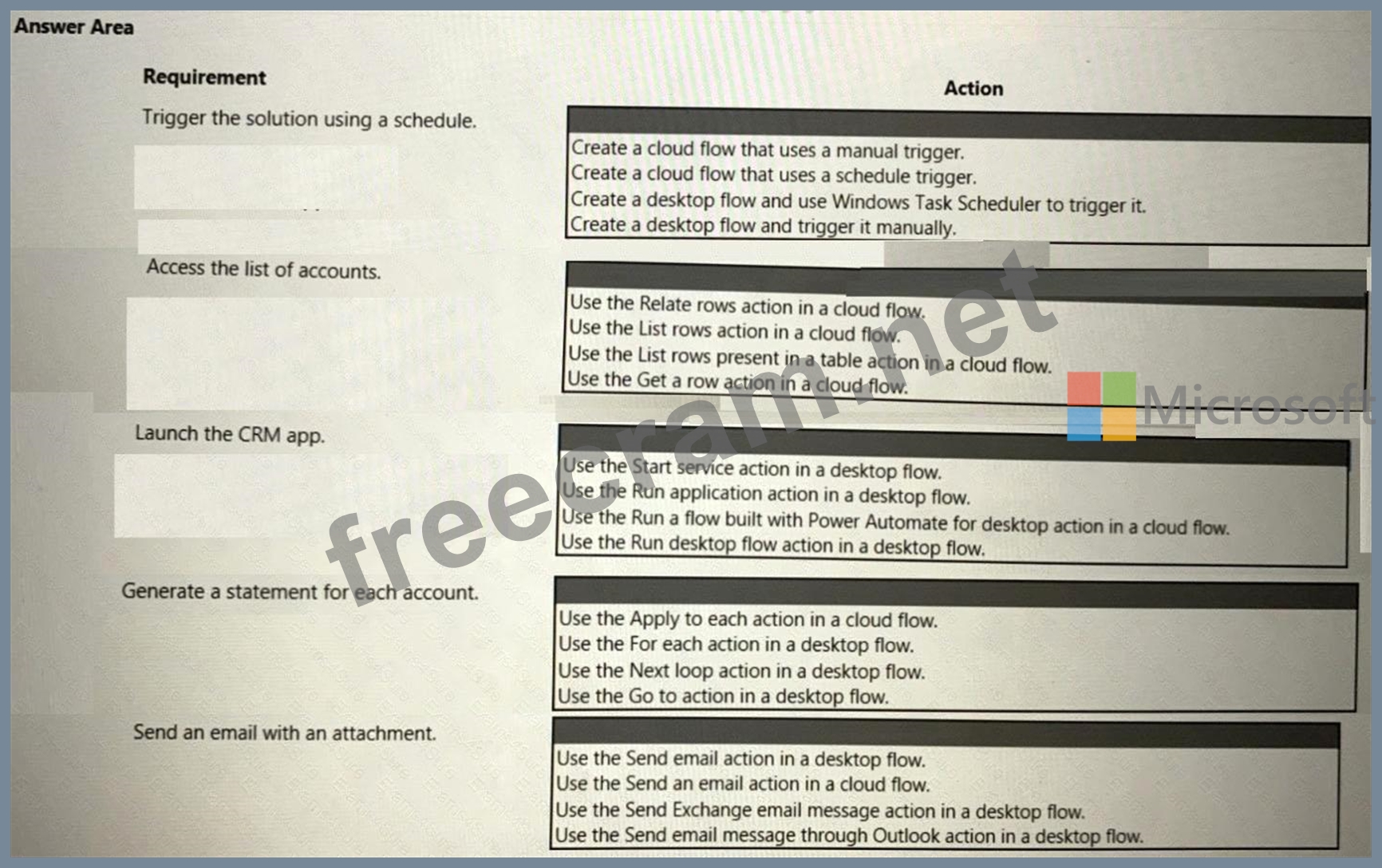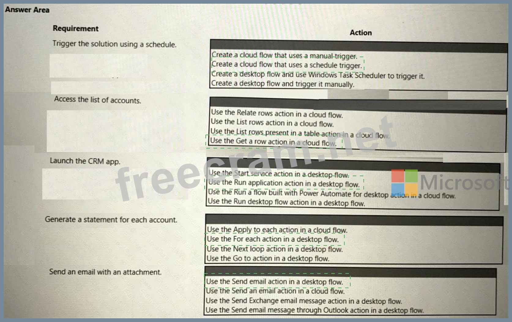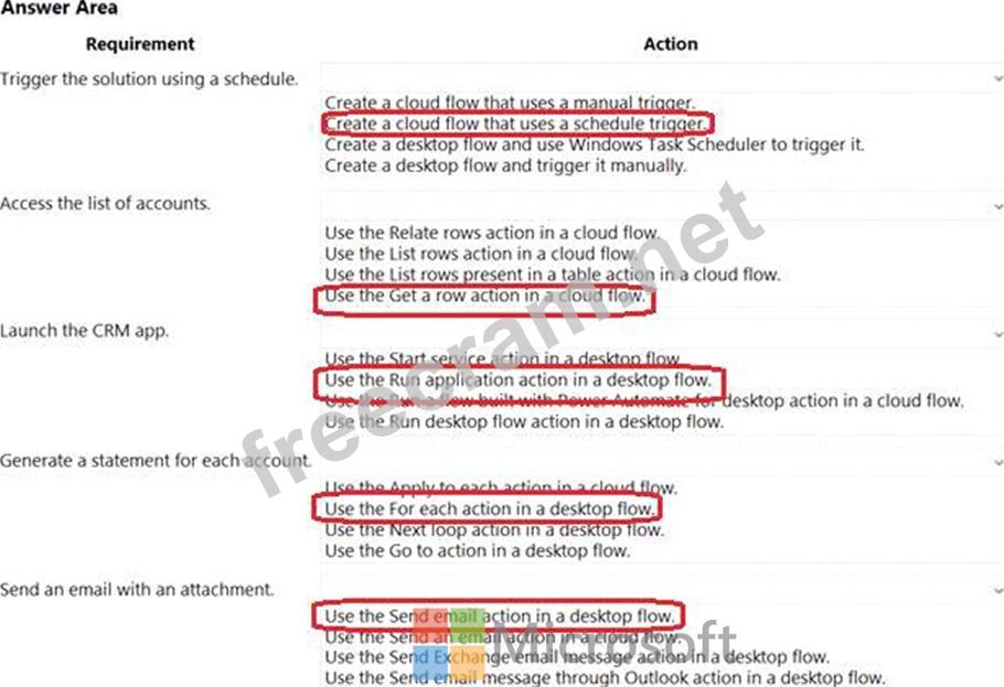 Each month an employee signs into the machine by using their Azure Active Directory (Azure AD) account to generate a financial statement for each account in a list of accounts. The list of accounts is stored in Microsoft Dataverse. The employee must send each customer their statements by using Office 365 Outlook.