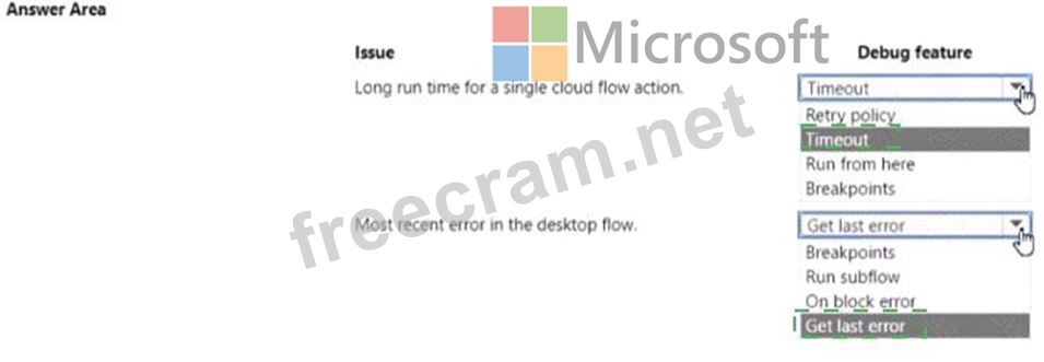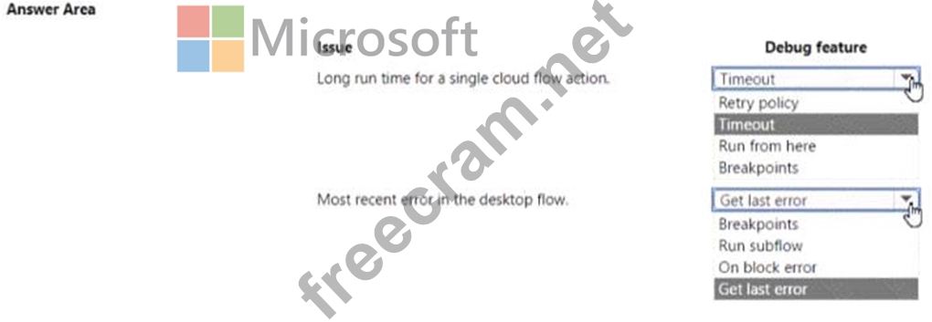 Which debug features should you use? To answer, select the appropriate options in the answer area.