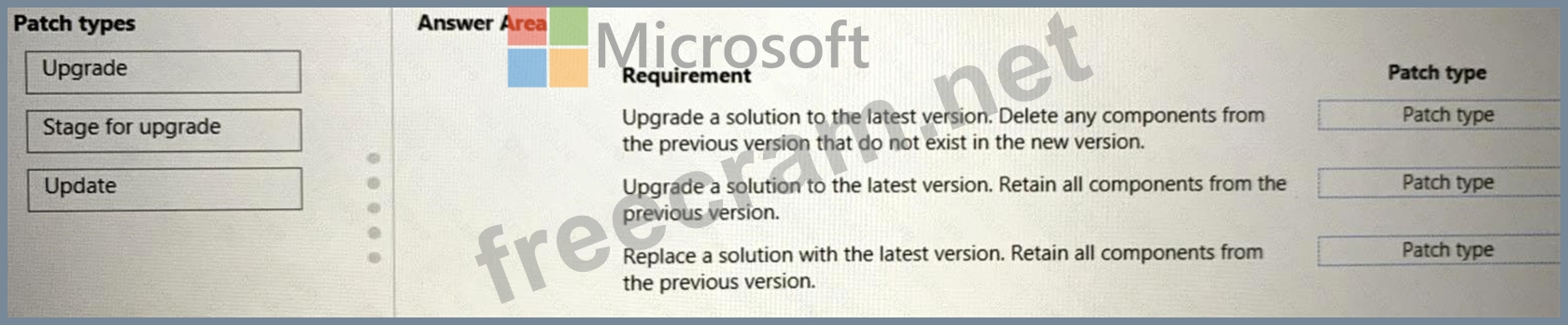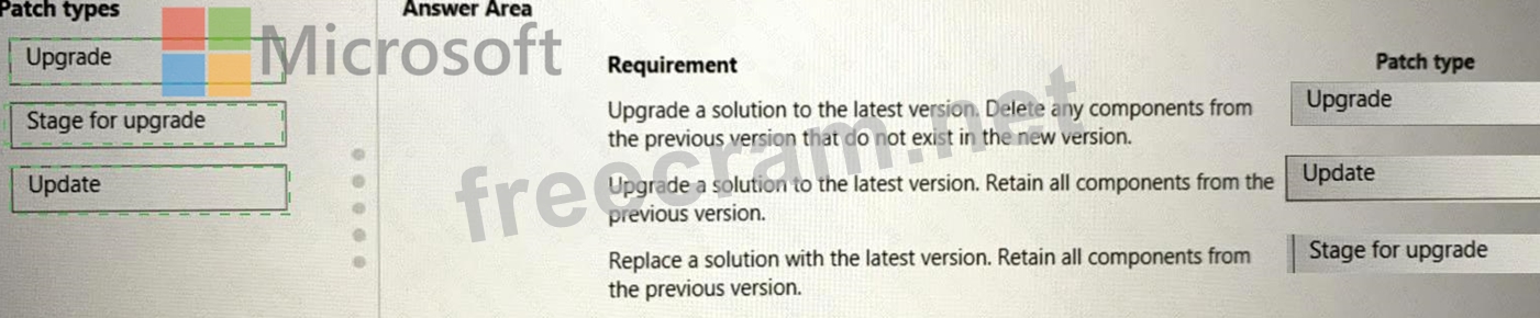 Which patch types should you use? To answer, drag the appropriate patch types to the correct requirements.