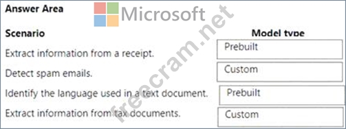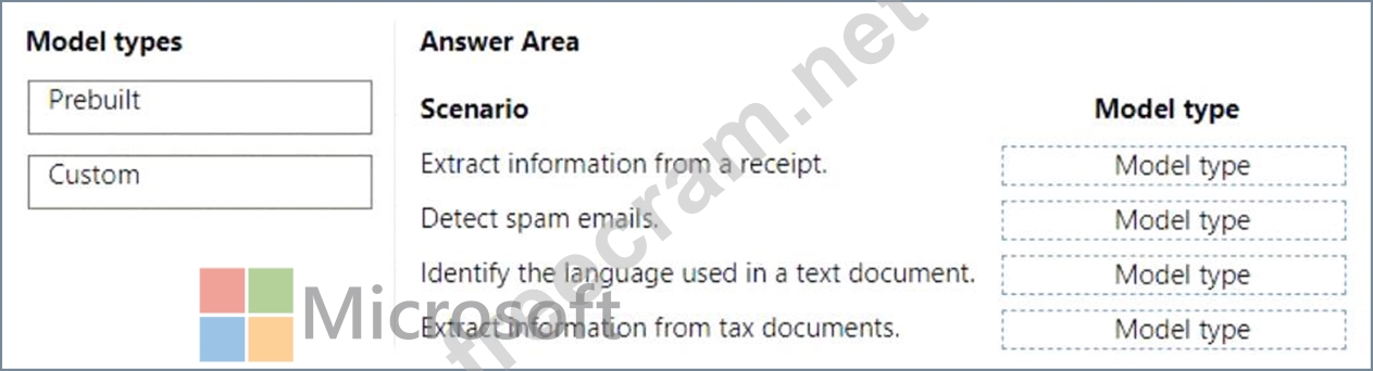 Which type of model should you use for each scenario? To answer, drag the appropriate model types to the correct scenarios. Each model may be used once, more than once, or not at all. You may need to drag the split bar between panes or scroll to view content.