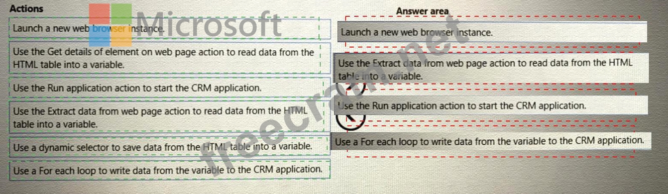 You need to implement an RPA solution that reads data from the HTML table and create records in the CRM application.