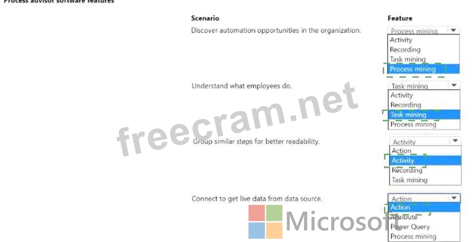Which feature should you use tor each scenario? To answer, select the appropriate options in the answer area.