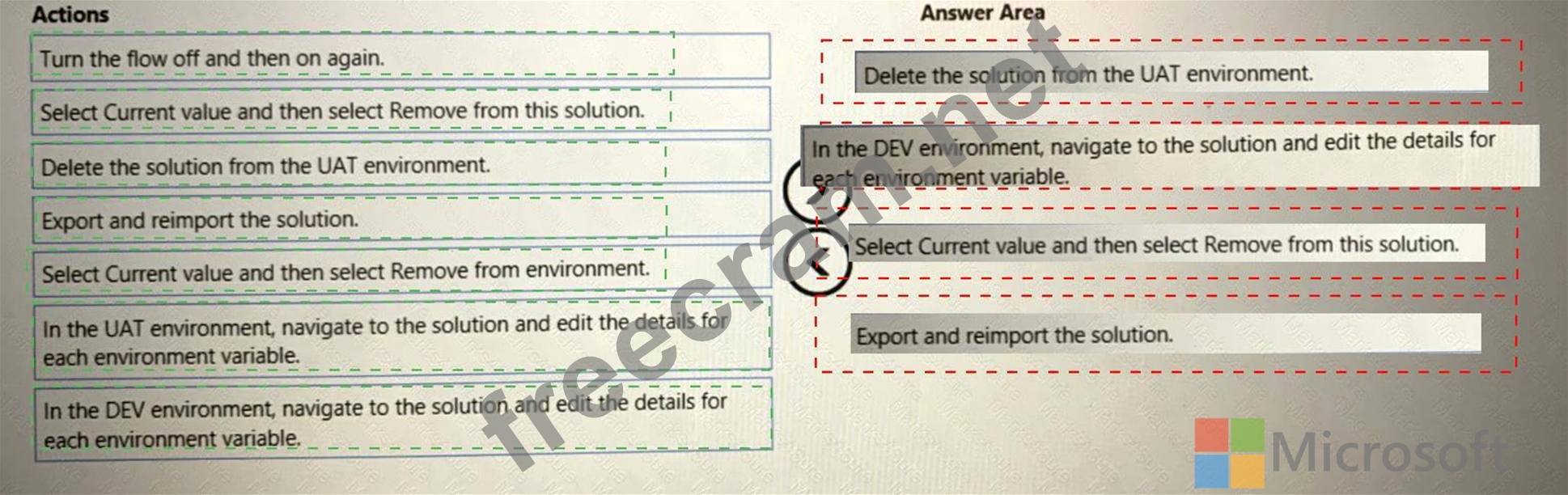 Which four actions should you perform in sequence? To answer, move the appropriate actions from the list of actions to the answer area and arrange them in the correct order.