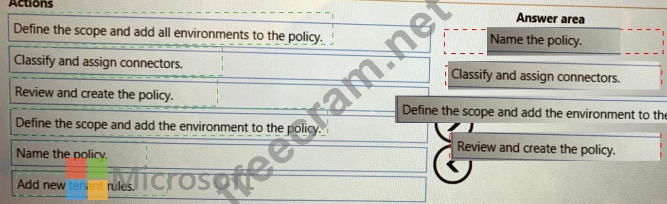Which four actions should you perform in sequence? To answer, move the appropriate actions from the list of actions to the answer area and arrange them in the correct order.