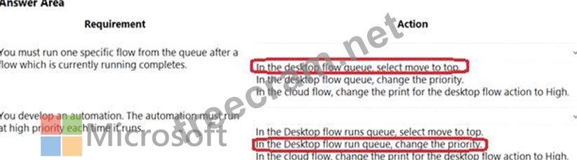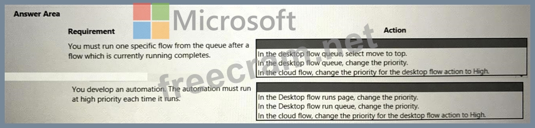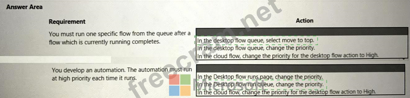 You need to manage the flows. To answer, select the appropriate options in the answer area.