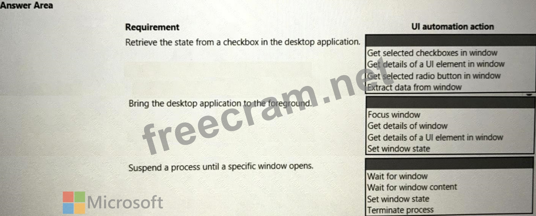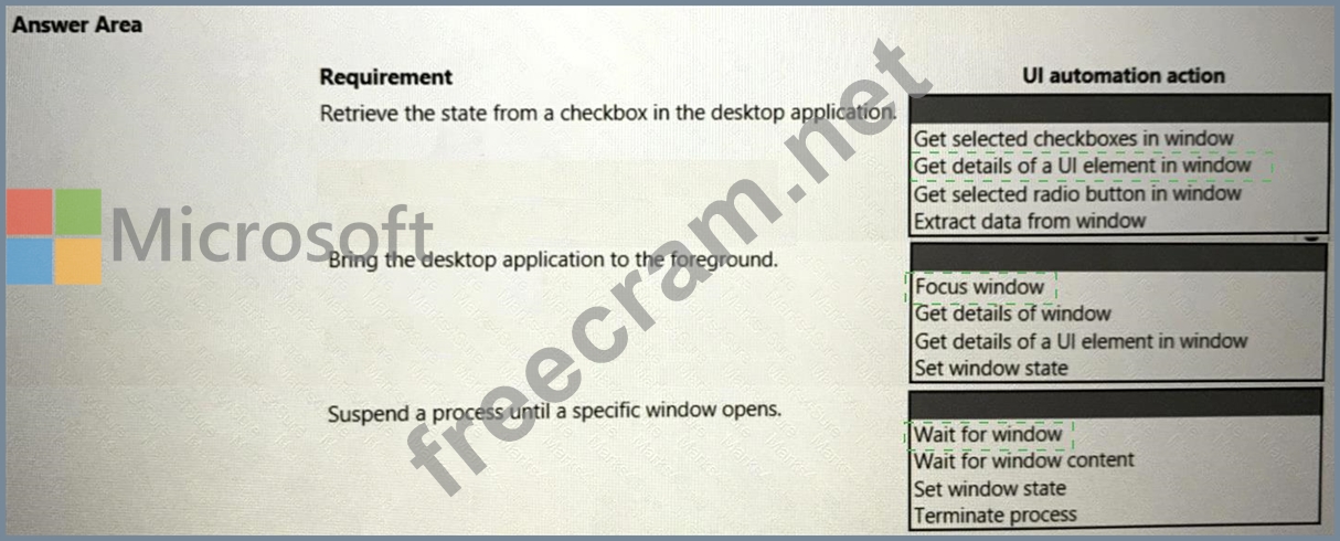 You need to select the appropriate Ul automation action for each business requirement.