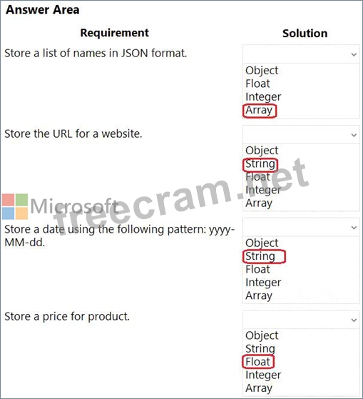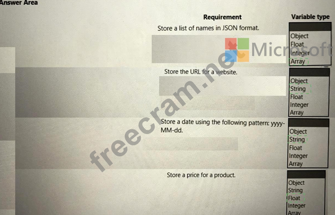 Which types of variables should you use for each type of data? To answer, select the appropriate options in the answer area.