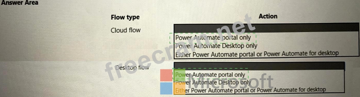 Question 41: You create the following flow: (Exhibit) Use the drop-down m...