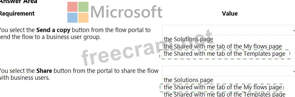 Question 41: You create the following flow: (Exhibit) Use the drop-down m...