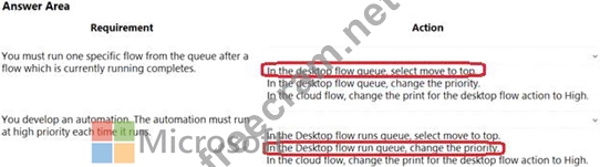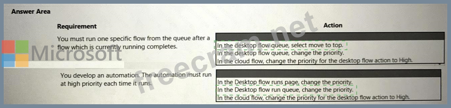 You need to manage the flows. To answer, select the appropriate options in the answer area.