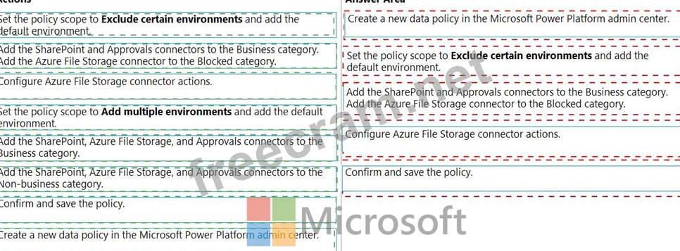Which five actions should you perform in sequence? To answer, move the appropriate actions from the list of actions to the answer area and arrange them in the correct order.