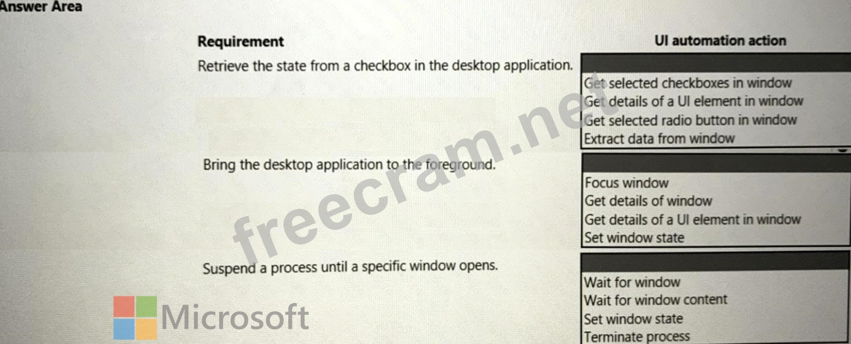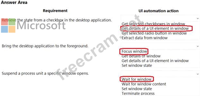 You need to select the appropriate Ul automation action for each business requirement.