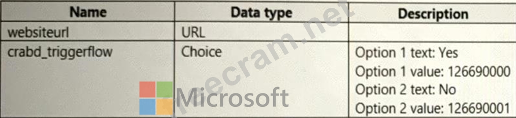 You are developing a flow that interacts with a Microsoft Dataverse table named Account. The table includes the following columns: