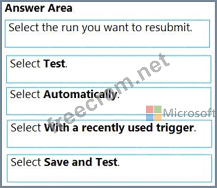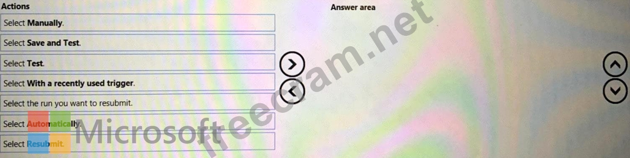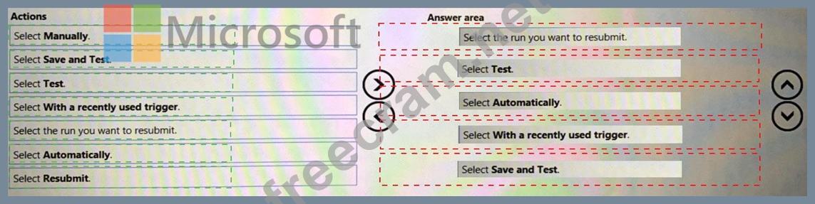 Which five actions should you perform in sequence? To answer, move the appropriate actions from the list of actions to the answer area and arrange them in the correct order.