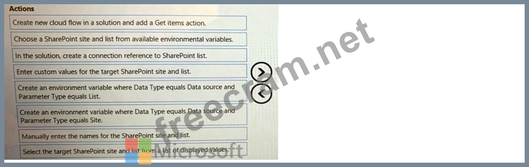 Question 37: You have a flow that interacts with different SharePoint sit...