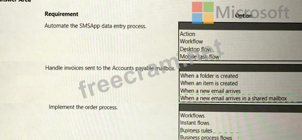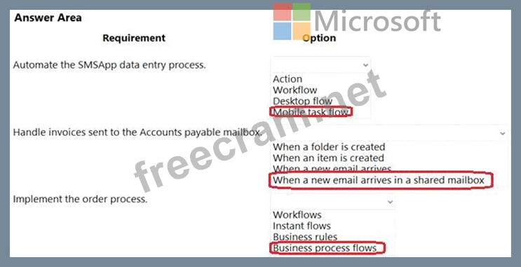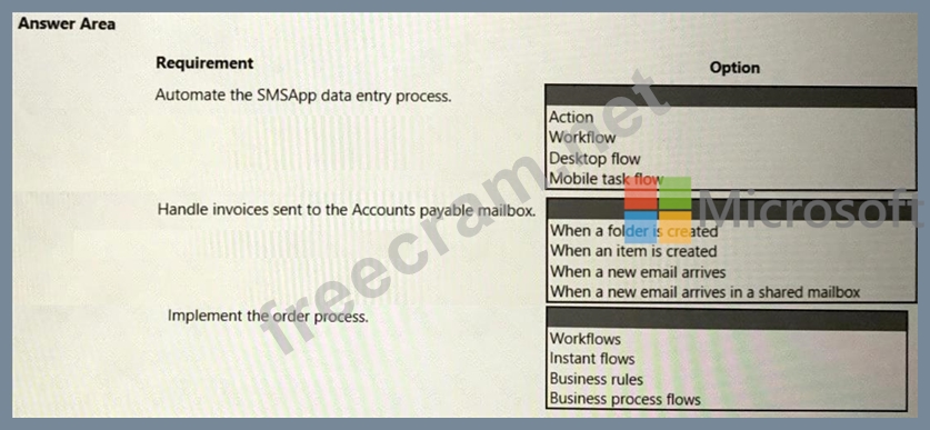 Question 47: You create the following flow. (Exhibit) Use the drop-down m...