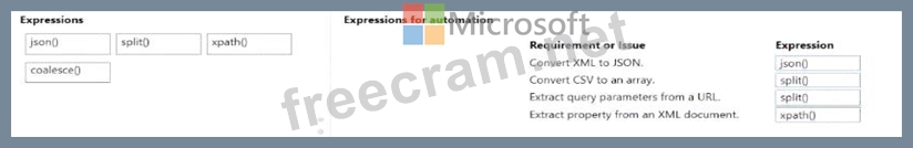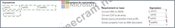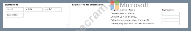 Which expressions should you use to address the requirements and issues? To answer, move the appropriate expression to the correct requirement or issue. You may use each expression once, more than once, or not at all. You may need to move the split bar between panes or scroll to view content.