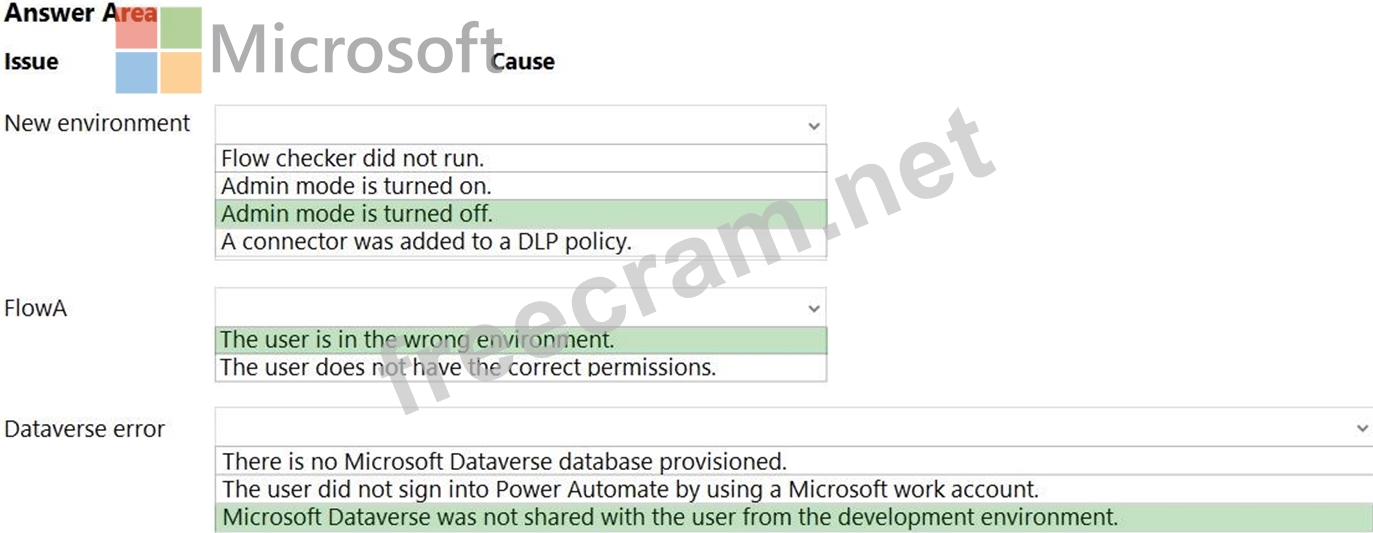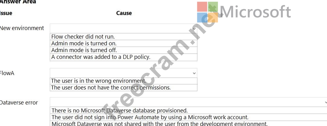 - The IT department creates a new environment that includes Microsoft Dataverse. An employee reports operational issues in Power Platform Admin center.
