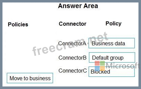 Which policy should you use for each connector? To answer, drag the appropriate policies to the correct connectors. Each policy may be used once, more than once, or not at all. You may need to drag the split bar between panes or scroll to view content.