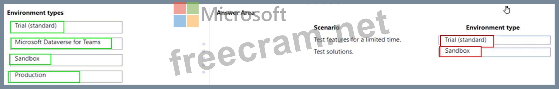 The company requires multiple test environments for users. The company wants to ensure that the Microsoft Power Platform environments are appropriate for the following cases: