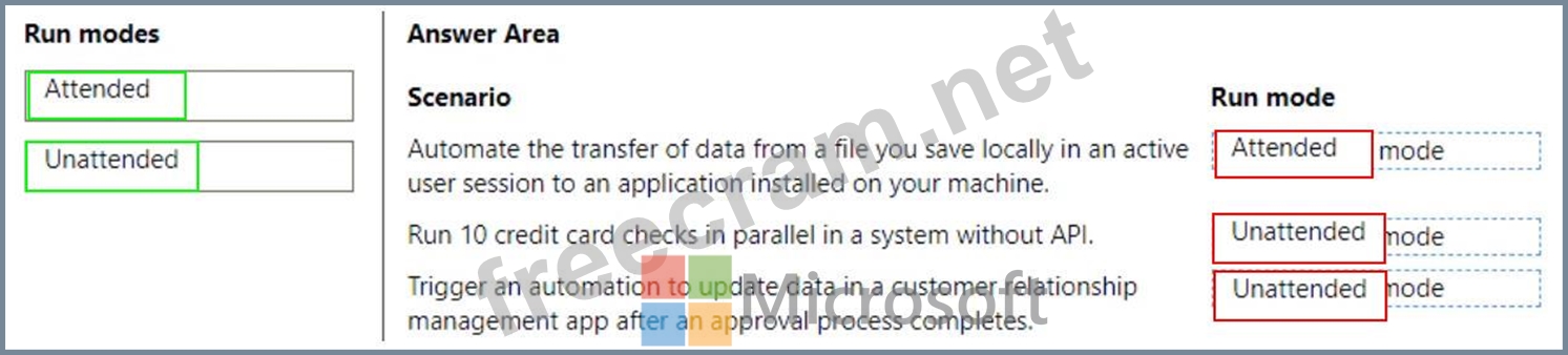 Which run modes should you use? To answer, drag the appropriate run modes to the correct scenarios. Each run mode may be used once, more than once, or not at all. You may need to drag the split bar between panes or scroll to view content.