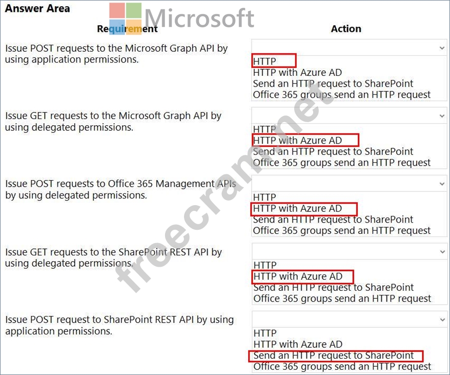 Which actions should you use? To answer, select the appropriate options in the answer area.