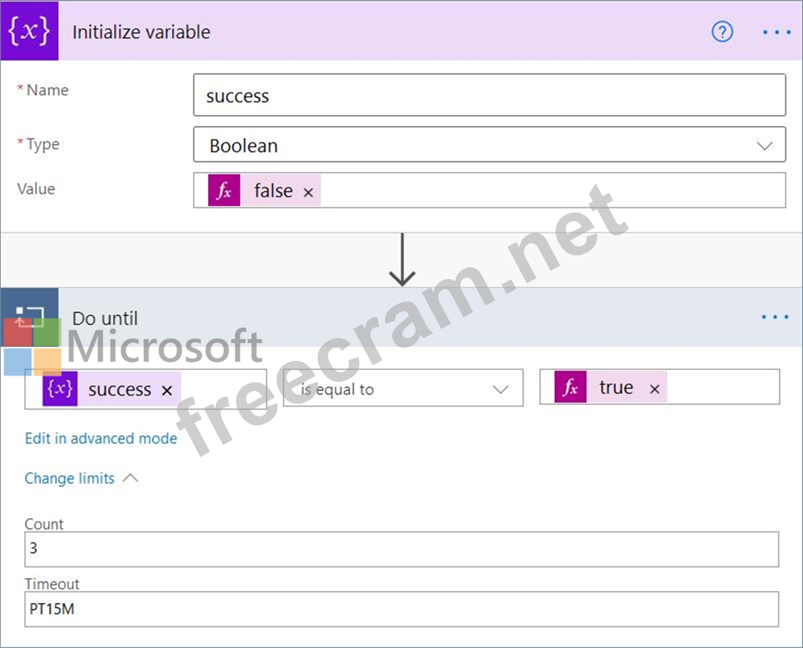 Question 7: You create the following flow. (Exhibit) Use the drop-down m...
