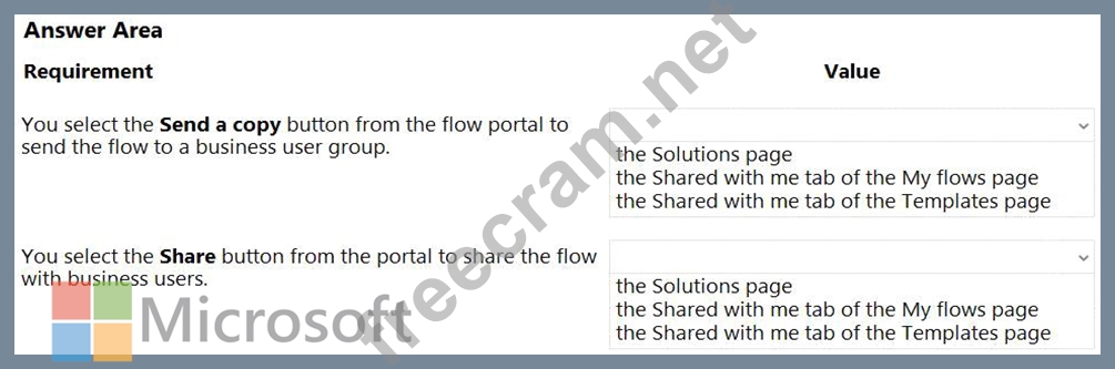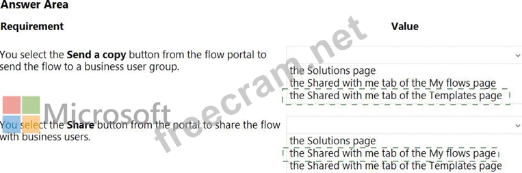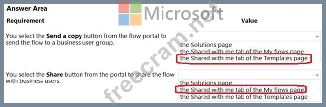 Question 19: You create the following flow: (Exhibit) Use the drop-down m...