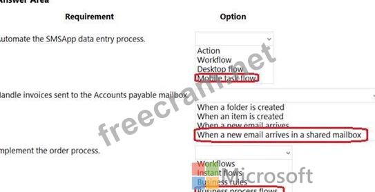 Question 19: You create the following flow: (Exhibit) Use the drop-down m...