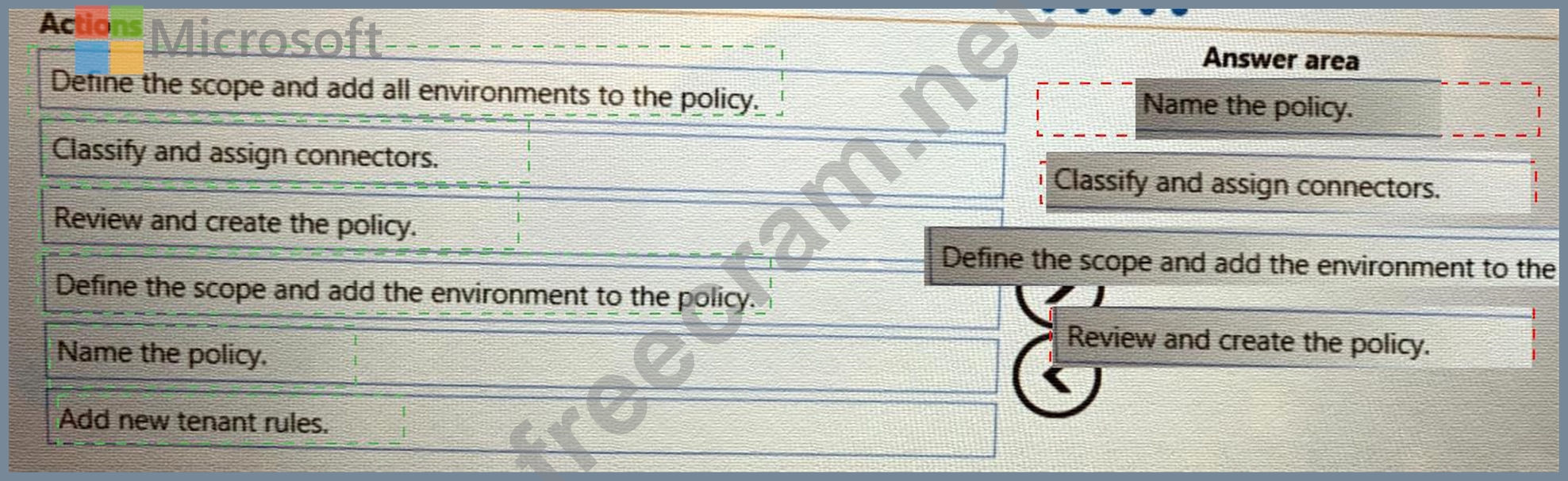 Which four actions should you perform in sequence? To answer, move the appropriate actions from the list of actions to the answer area and arrange them in the correct order.