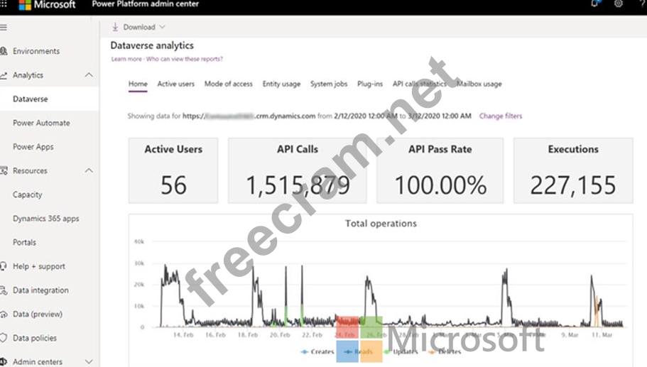 API Calls: API Calls Number of API calls that were made by the Dataverse environment for the selected time period.