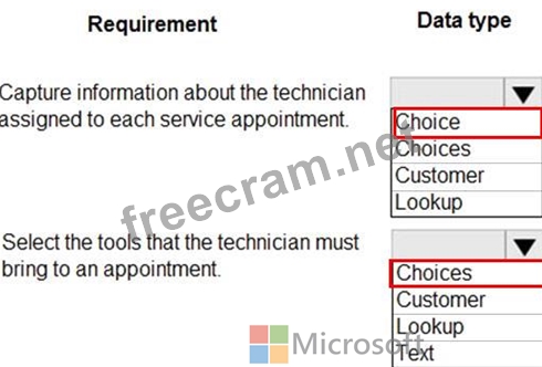 You are designing a Power Platform solution for a company that provides in-home appliance maintenance. When a customer schedules a service appointment, a dispatcher assigns one technician for a specific time and location.