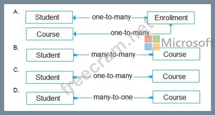 You are designing the data model for a school. The school wants to track students' enrollments in courses.