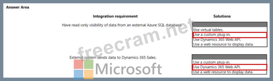 A company plans to create a Microsoft Power Platform solution that integrates with Dynamics 365 Sates. The solution must meet the following requirements: